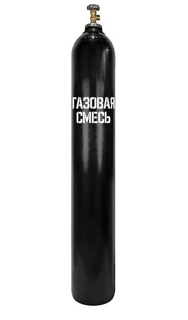 Промышленный газовый баллон черного цвета, предназначенный для хранения газовой смеси. 30% углекислоты и 70 процентов азота пищевого. также есть азот пищевой 99, 999 частота. Оборудован стандартным вентилем сверху для подключения и регулировки подачи газа. Надпись "ГАЗОВАЯ СМЕСЬ" на корпусе указывает на его содержимое. Подходит для использования в различных промышленных и строительных целях, где требуется автономное газоснабжение.