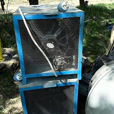 Промышленный воздухонагреватель/вентиляционная установка в металлическом корпусе.