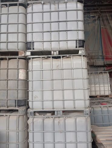 Еврокубы (IBC-контейнеры) для хранения и перевозки жидкостей. Характеристики: - Объем: 1000 л (типовой кубический бак IBC). - Материал внутренней емкости: плотный пищевой/технический ПЭНД (пластик...