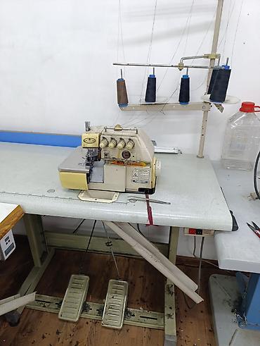 Промышленный оверлок на рабочем столе с подставкой для нитей. - Тип: 5-ниточный оверлок (видны 5 катушкодержателей), дифференциальная подача. - Комплектация: стационарный стол с линейкой-разметкой...