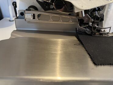 Промышленный оверлок JACK (серия 4-ниточных оверлоков) на столе со штатной стойкой для нитей и педальным приводом. Основные особенности: - 4-ниточная/3-игольная схема (узел с тремя петлителями и р...