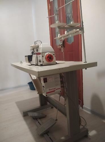 Промышленный оверлок SANTAR на столе с подставкой под нитки