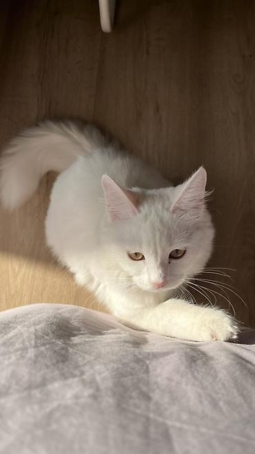 Окрас: Однотонная белоснежная, очень пушистая и полудлинная шерсть.