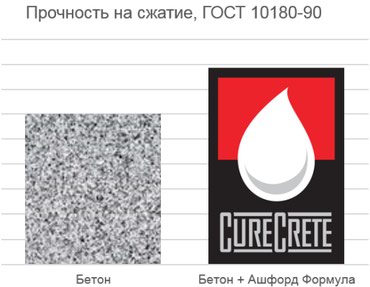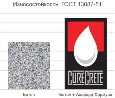 Проникая в верхний слой бетона, Ашфорд Формула (Ashford Formula) реагирует с компонентами цементного камня, в результате чего поры бетона зарастают труднорастворимыми новообразованиями, которые обладают повышенной твердостью, и по структуре напоминают минералы цементного камня. Результат: беспыльный, упрочнённый бетон (до 40%), с повышенной влаго- морозостойкостью.