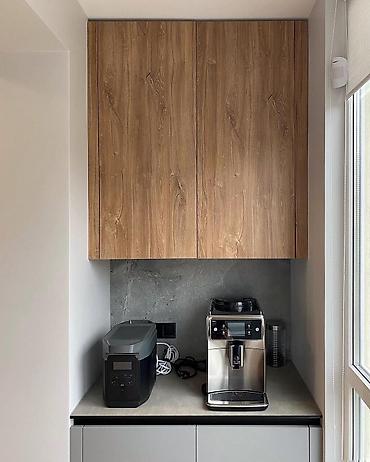 Благодаря тщательной подготовке, проектированию и внимательному подходу, нам удалось успешно реализовать угловую кухню. Результат получился очень гармоничным и красивым, в таких тонах, о которых заказчица и мечтала. Ангелина осталась довольна новой кухней, а нам в свою очередь, было приятно