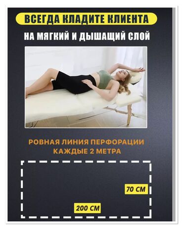 Простыни ламинированные, в индивидуальном сложении, внутренняя сторона которых изготовлена из спанбонда, а внешняя ламинирована, предназначены для защиты оборудования от влаги и косметических средств во время мокрых процедур. Используются в косметологических центрах, медицинских учреждениях, массажных кабинетах и спа-центрах.
