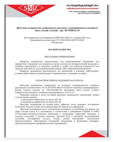 Простыни ламинированные, в индивидуальном сложении, внутренняя сторона которых изготовлена из спанбонда, а внешняя ламинирована, предназначены для защиты оборудования от влаги и косметических средс...