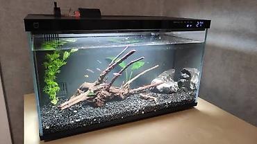 Аквариумный столик/тумба с панорамным остеклением. - Форма: шестигранник, верхняя столешница из закалённого стекла на металлических опорах. - Корпус: декоративный шпон под тёмное дерево, смотров...