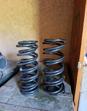 Пара автомобильных пружин подвески (задние/передние — в зависимости от вашего авто). - Тип: винтовые пружины. - Материал: пружинная сталь. - Диаметр прутка: визуально около 12–14 мм. - Конс...