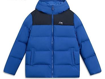 Пуховая куртка Li-Ning, синяя с контрастными черными вставками на
