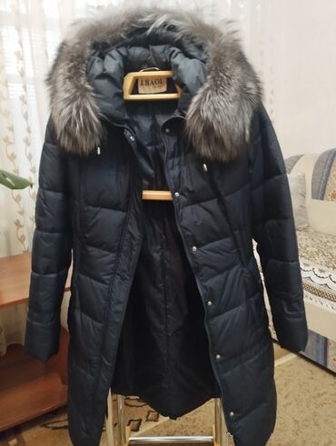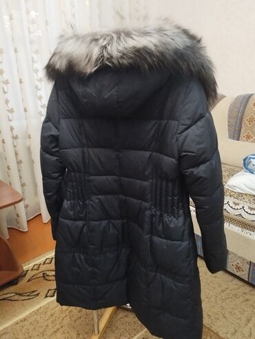 Продаю женскую зимную пуховик куртку, размер 48 XL , удобная, очень тёплая, цвет темно синяя, воротник писец, цена 3000 сом.