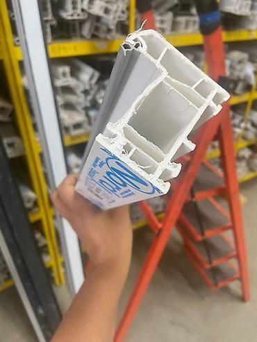 - Материал: ПВХ-профиль с армированием (видны образцы створок и рам).