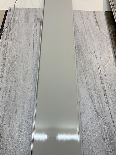 - Гладкая глянцевая однотонная планка с V‑пазом.