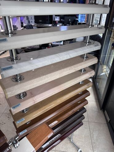 - Под дерево: светлый дуб, дуб золотистый, тёмный дуб, орех, венге и др. С выраженной текстурой шпона или глянцевым лаковым эффектом.