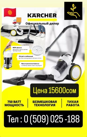 Пылесос, Karcher, Стандартный, Сухая, Влажная, Паровая, Контейнер, Мешок, Циклонный фильтр