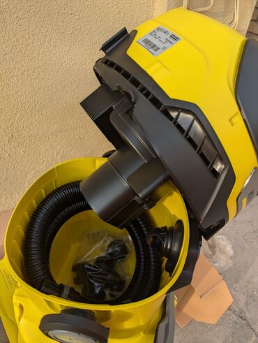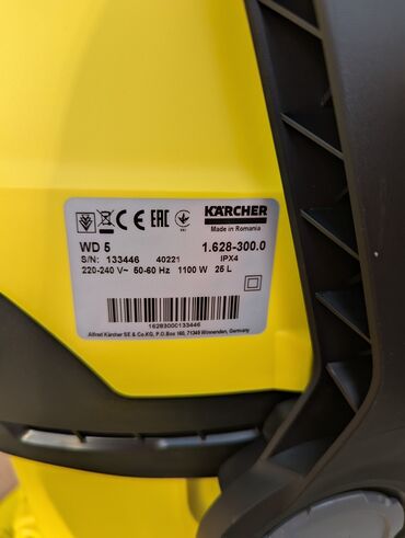 - Мощный универсальный агрегат в фирменном жёлто‑чёрном корпусе с ручкой для переноски и колесиками.