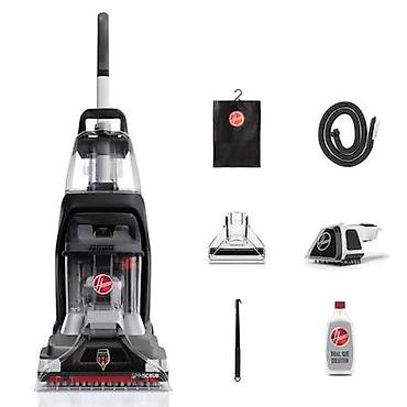 - Комплектация (на изображениях): основной блок, гибкий шланг, насадка-щетка для мебели/ступеней, широкая насадка для пятен, инструмент для чистки, чехол/сумка для хранения, пробник фирменного моющего раствора.