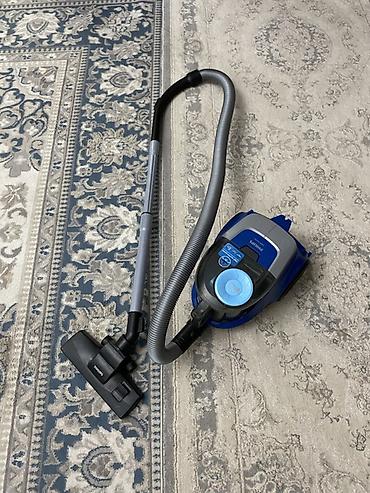В комплекте на фото: основной блок, шланг, телескопическая трубка, универсальная щетка. Цвет: синий/серый.