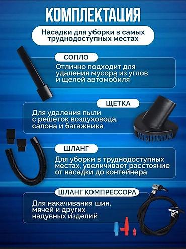 1. Портативный автопылесос прекрасно улавливает пыль и другие загрязнения даже в самых труднодоступных местах в салоне и багажнике автомобиля.