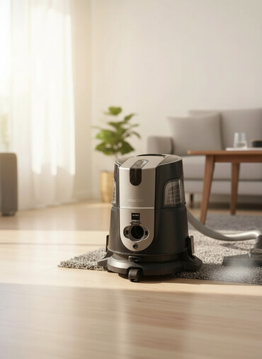 - Плюсы аквафильтра: постоянная сила всасывания без потери из‑за забитых мешков, простая утилизация грязи — выливается вместе с водой, снижение пылевого облака при уборке