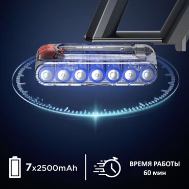 Пылесос безпроводной Мощность 800W, Объем пылисборника 1,2л, Моющийся фильтр - Съемный, Аккумулятор 7×2200 mAh, до 60 минут непрерывной работы, Турбощетка с подсветкой, щелевые насадки, стальна...