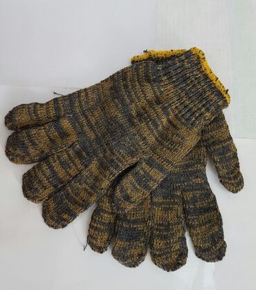 - Вязаные пятипалые перчатки из смеси пряжи (серо‑горчичный меланж). Эластичная манжета, плотная посадка, подходит для погрузочно‑разгрузочных работ, садовых и строительных задач, защиты рук от загрязнений и легких механических воздействий.