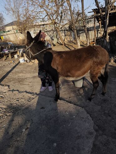 Осёл рабочий - Порода: домашний осёл, компактного роста, крепкое телосложение. - Окрас: тёмно‑коричневый с светлой мордой и брюхом. - Уши крупные, внимательные — хорошо ориентируется и реагирует н...