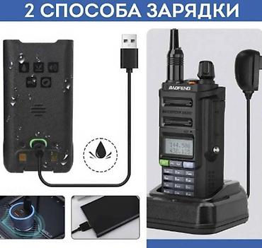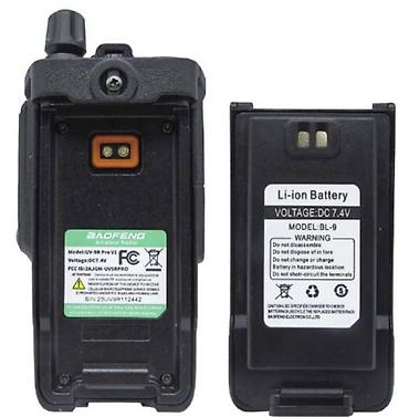 Портативная радиостанция Baofeng UV-9R Pro USB TYPE-C оборудована литий-ионным аккумулятором с напряжением 7,4 В и емкостью не превышающей 1800 мАч. Для зарядки устройства используется разъем USB Type-C.