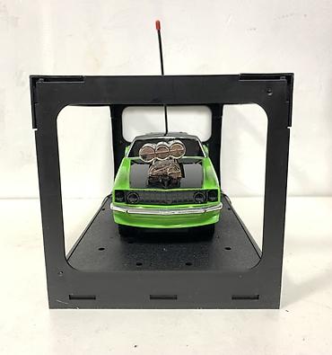 - Комплектация на фото: машинка, пульт дистанционного управления, демонстрационная подставка/рамка для хранения и экспонирования.