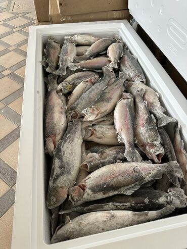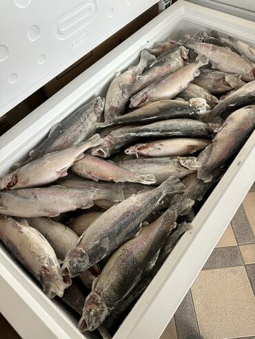 ЗамороженныйСвежемороженая радужная форель, вес рыбы от 0.9 до1.3кг от5кг и выше доставка бесплатная по городу Бишкек. Цена 500сом за кг. . . ватсап.