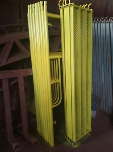 - Конструкция: вертикальные рамные стойки с крюками/фиксаторами, горизонтальные связи, настилы-щиты. Элементы унифицированы для быстрого монтажа и разборки.