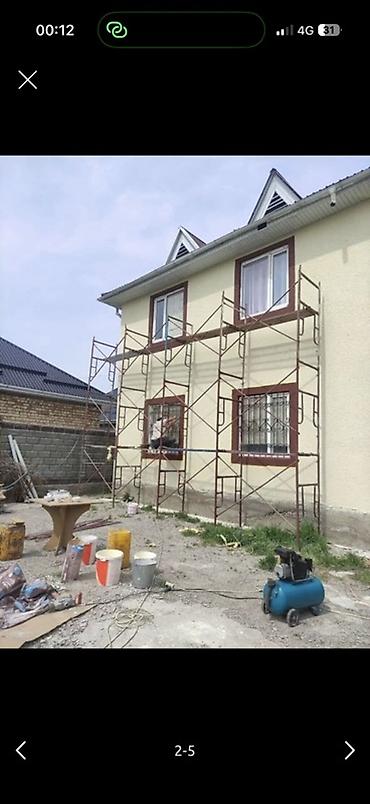 - Применение: штукатурка и покраска фасадов, утепление, монтаж окон/карнизов, кровельные и отделочные работы