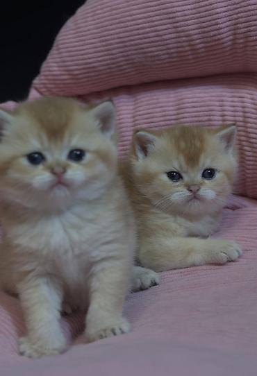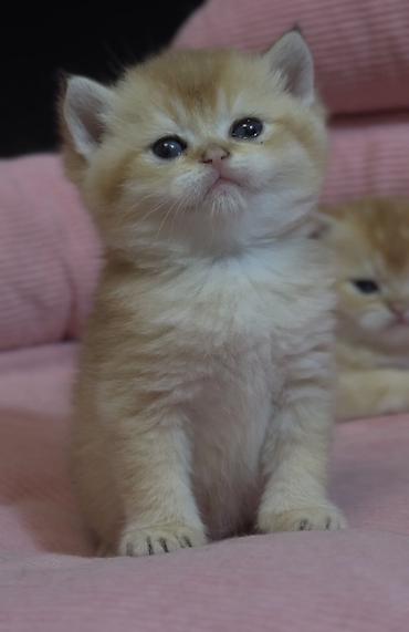 Британские короткошёрстные котята, золотая шиншилла (окрас напоминает «золотой» с тёплым персиковым тоном). Компактные, густая плюшевая шёрстка, округлая мордочка, выразительные круглые глазки, сильные лапки.
