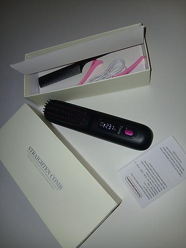 - Комплектация: расческа-выпрямитель, кабель питания/зарядки, гребень, зажимы для волос, инструкция, фирменная коробка