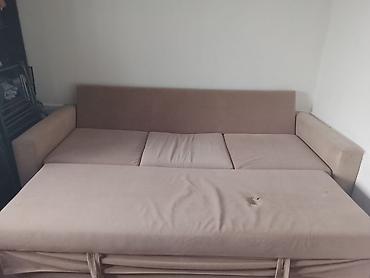 В г.Кант продаётся раскладной диван-кровать б/у, ткань потёрлась, имеются 3 дырочки. - Тип: прямой диван с мягкими подлокотниками - Механизм: раскладывается в полноценное спальное место (книжка/кл...