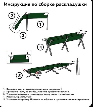 Раскладушка со вшитым матрасом Параметры :190х67 Голова регулируется, складывается Нагрузка до 130 кг