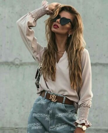 Распродаем остатки товара с Европы нежная блуза в модном цвете пудра, размер m (44-46).