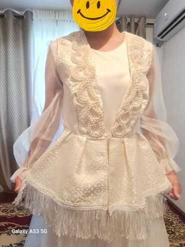 Продаю национальные Накидки с базовыми платьями на Кыз узатуу. (Новые ) 42-44-46р . 1) Комплект (базовым платьем) (Айвори)44-46р очень красивое заказывали из Ташкента 12,500 . 2) Комплект накидка ...