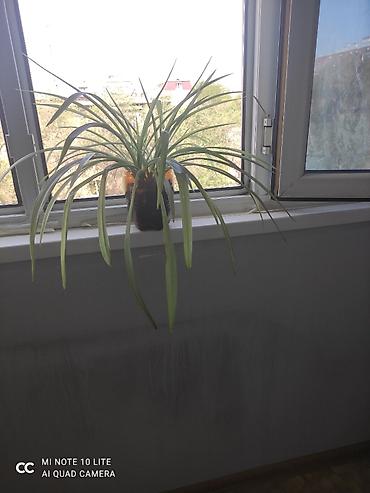 Комнатные растения в горшках: 1) Хлорофитум (Chlorophytum comosum) —