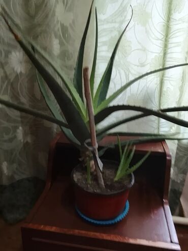 - Алоэ, лечебный, возраст более 1 года, разме: высота 30 см. Есть два растения, надо пересадить в больший горшок. Цена 100 сом за одно растение . - Алоэ, маленький отросток с большим горшком - ц...