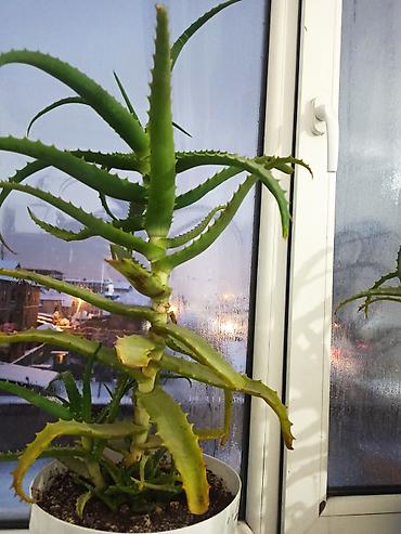 Алоэ (в горшке), взрослое растение с мощным стволом и мясистыми