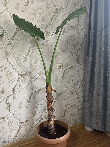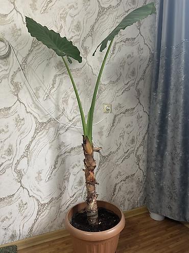 Комнатные растения в горшках 1) Ароидное растение с крупными сердцевидными листьями (похоже на алоказию/колоказию). - Высота растения примерно 60–80 см вместе с горшком - Диаметр горшка: около 20–...