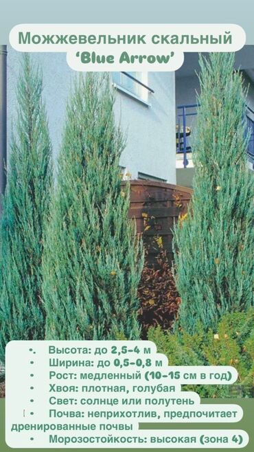 Предлагаем различные виды хвойных растений для украшения вашего сада или участка. В ассортименте туи западные 'Mirjam', можжевельник скальный 'Blue Arrow', можжевельник горизонтальный 'Wiltonii' ,м...