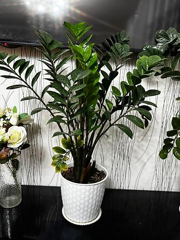 Продается Замиокулькас, или долларовое дерево в белом горшке. Он идеально подходит для украшения интерьера дома или офиса, пересадка не требуется. 3000 сом.