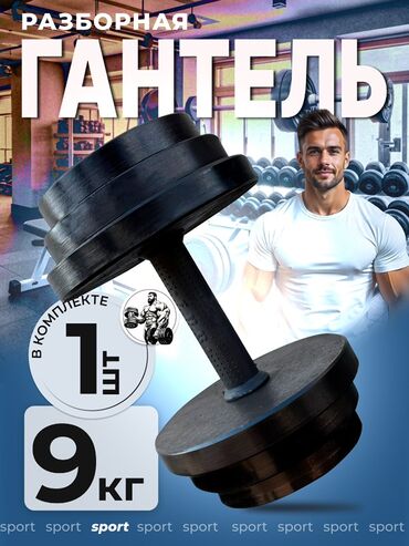 Разборная гантель 9 кг Особенности: - Регулируемый вес. Быстрая