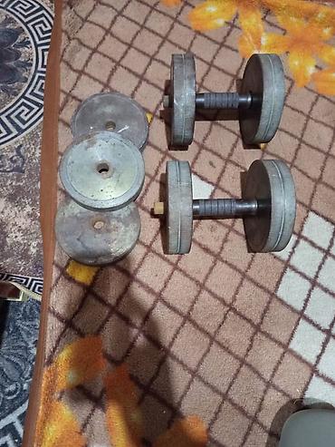 - Конструкция: стальные/чугунные диски на резьбовом грифе, фиксация гайками. Рифлёные рукояти для надёжного хвата.