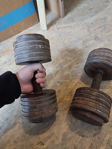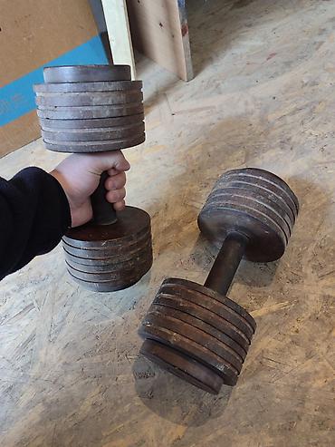 Разборные гантели из металла, каждая весом 15 кг, предлагают удобство