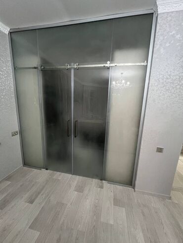 Раздвижная душевая перегородка из закалённого стекла с матово‑чёрной