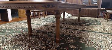 - Опоры: шесть точёных деревянных ножек для высокой устойчивости; царга с резным декором по периметру.