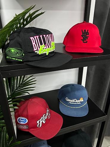 Разнообразный ассортимент бейсболок и кепок, представленный в различных цветах и стилях. В наличии модели с плоским и изогнутым козырьком, а также варианты с сетчатой задней частью для лучшей вентиляции. Некоторые кепки украшены вышивкой или принтами, добавляя индивидуальности. Подходят для повседневной носки, занятий спортом или дополнения уличного образа.